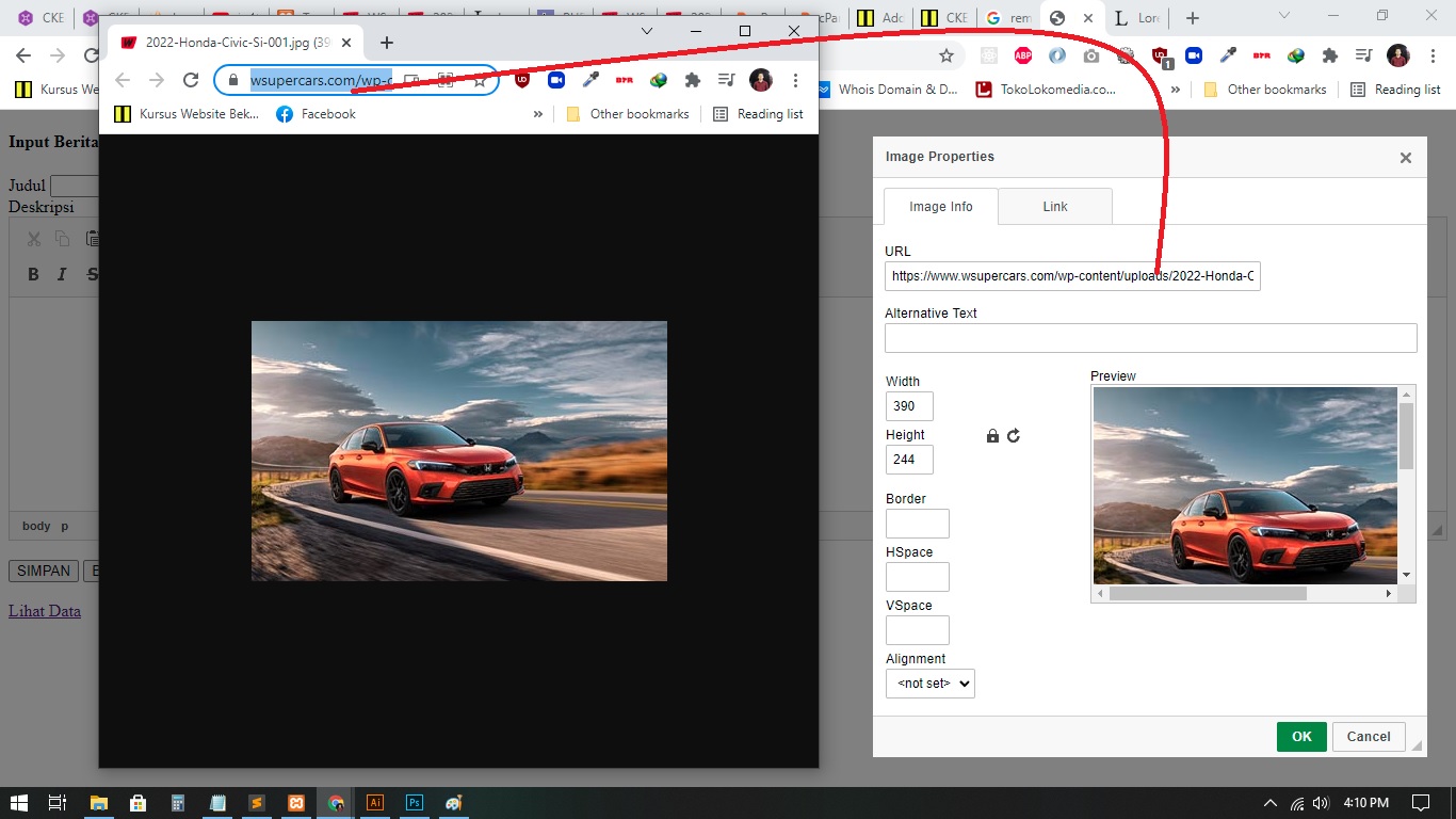 Ini adalah contoh sederhana pengaturan gambar berada tepat ditengah pada saat menggunakan Plugin CKEditor